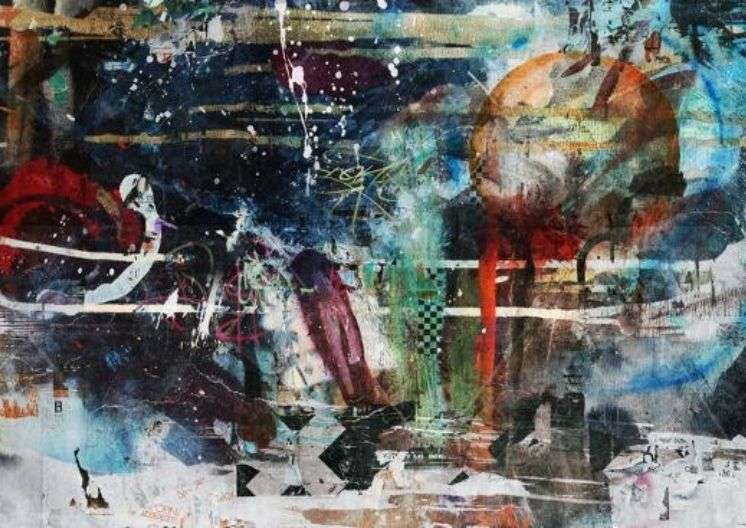 Acrylic and Collage, Vinyl on Frame 30 x 40 $750...
