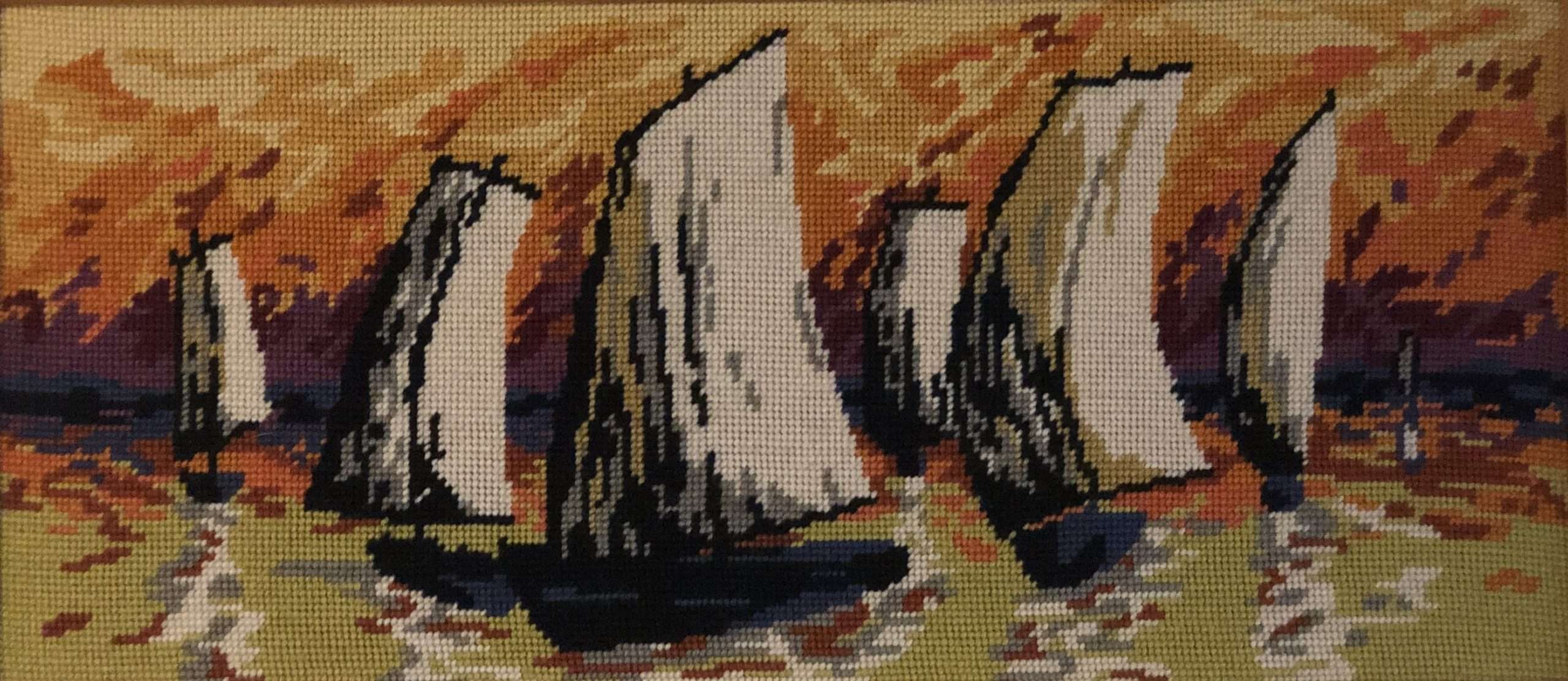 Vintage Needlepoint w Felt Matt 18 x 30 $200...