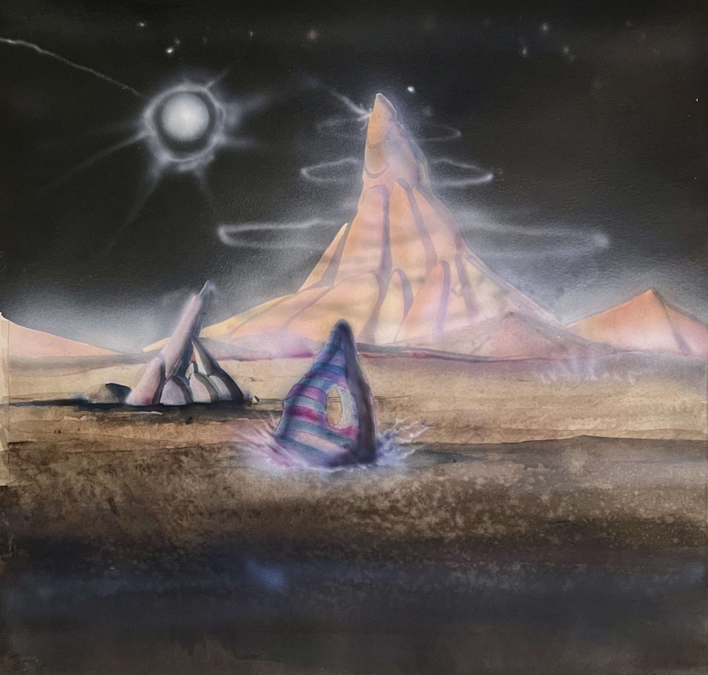 Watercolor, charcoal and marker on paper, 9 x 12 inches, $300...
