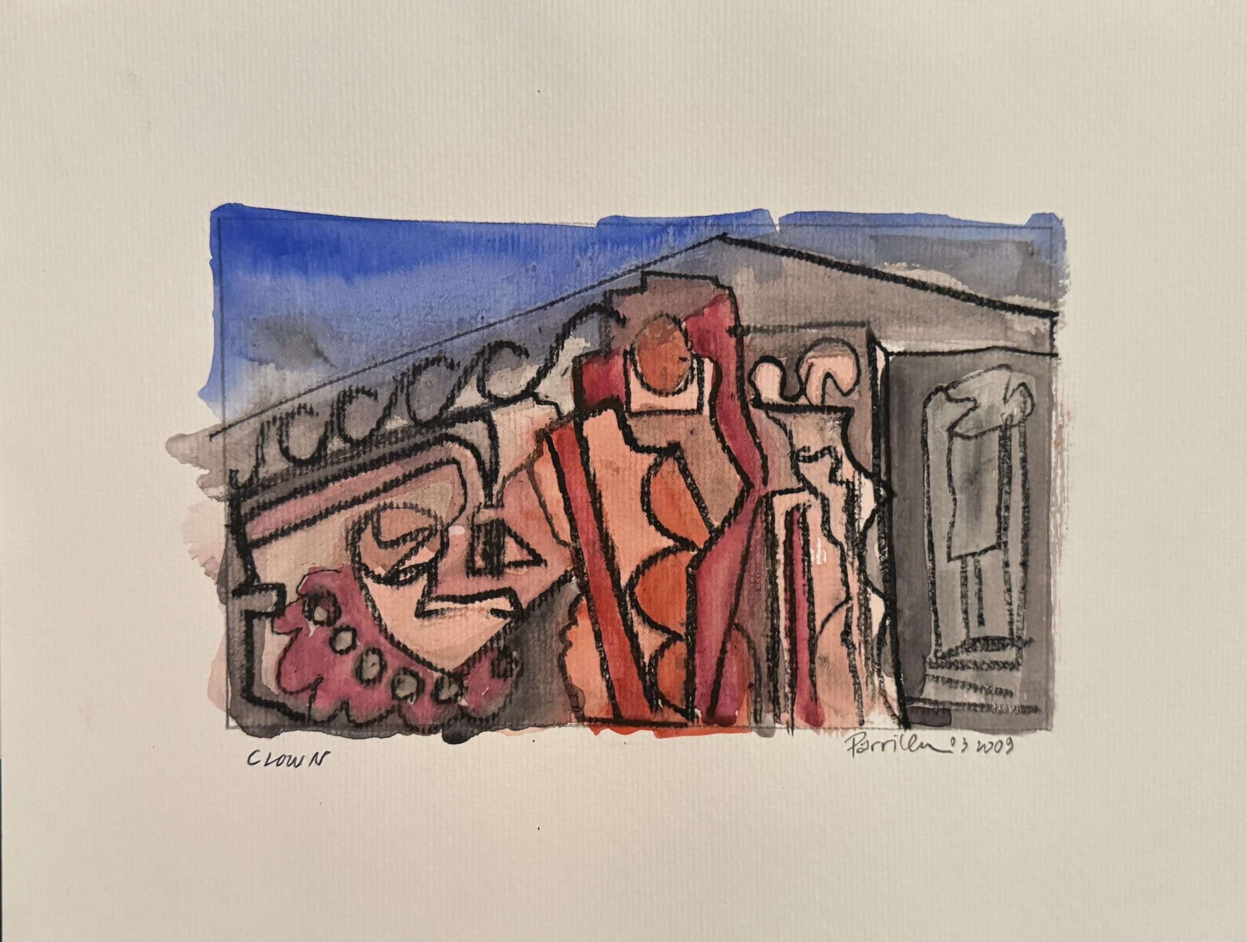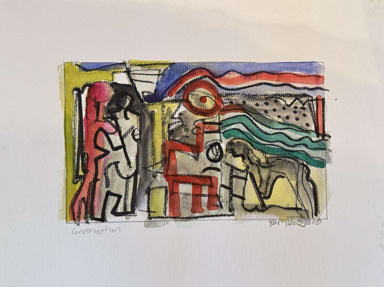 Acrylic and ink on paper, 9 x 12 inches, matted and framed, $600...